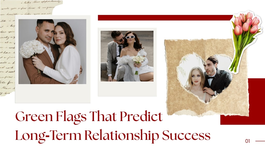 Green flags include emotional consistency, respectful communication, shared values, and secure attachment patterns that support long-term relationship stability and growth.