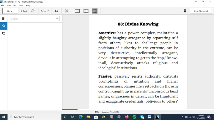 Anyway, once you find out what the Karmic Accumulation number is, you can go to the corresponding book, The Heart of Numerology, that has descriptions for each number. The one under KA 19 reads: