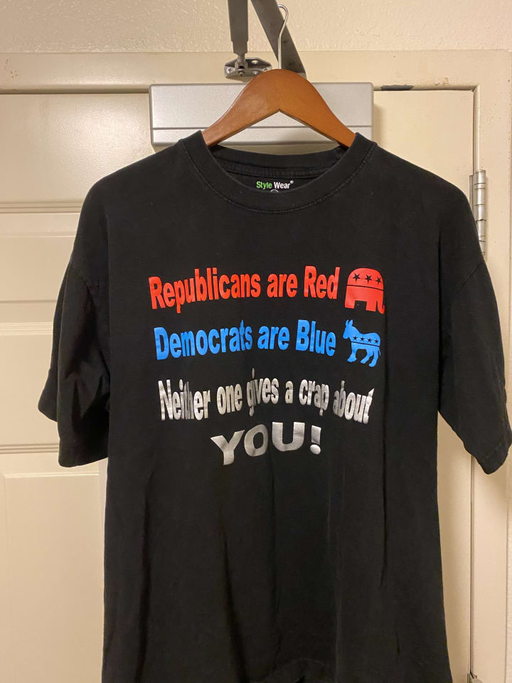 So, in light of this information, is it such a "crazy" stretch (as observers have said) to wear a shirt bought at the mall, as I do, that states "Republicans are Red/Democrats are Blue/Neither one gives a c*ap about YOU!"? It says in the information that narcissists "tend to turn down advice and requests of others" instead of wanting to help as servants of the people. Could it be that their only concern is more economic and political power, as asserted in William Cooper's Behold a Pale Horse, and the transfer of power we just had in the country isn't really that much of a change? Could it be that the public has mistaken these leaders for benevolent empaths and they might not be worthy of the adulation they receive just for being rich, famous, and powerful people? Could they be involved in even more sinister activities akin to the revelations of Epstein Island, vindicating someone such as conspiracy theorist and model (according to 365) David Icke who once said in an interview that there is a strong correlation of people in positions of power to pedophilia*? Could many of these figures not be Godly men/women as they often claim, but have really made a deal with the devil and joined evil men to achieve their aspirations, by any means necessary and whatever the cost**? It shouldn't seem so crazy to the public now in my opinion.