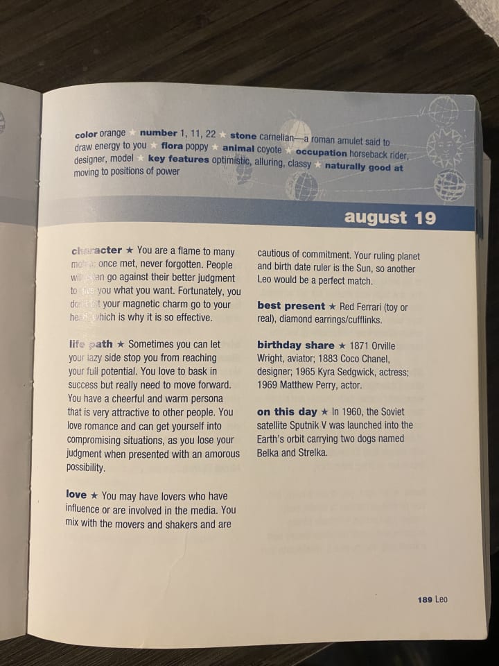 For some reason, these ideas have gotten the most pushback from the few people who have engaged me about them, although it's probably for the same reason of Lynch's bitterness in the video and mine because of things that have happened in my own life (despite 365 saying he's "gorgeous" and "has his pick of the pile" on page 167). The first man didn't really challenge me on the idea but that he thinks that his wife is the most beautiful, and I think he was upset that she wasn't born on a 3 day. The next one challenged the idea that all people who are born on certain days would be models, which implies beauty, so I gave him August 19th as an example from the book on page 189. In my research, some of the people I've found to be born on that day are Bill Clinton, John Stamos, Kirk Cousins, and Matthew Perry.
