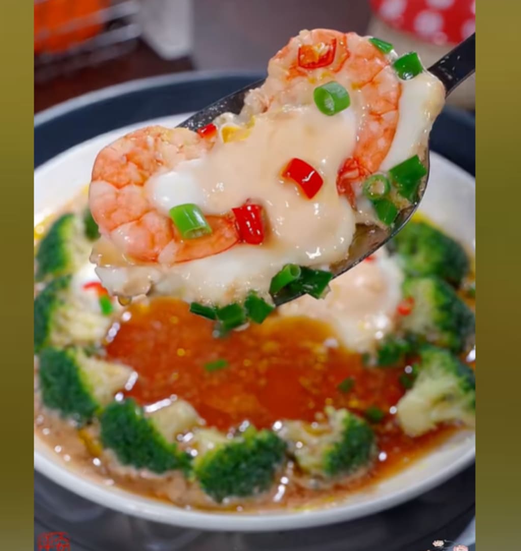 5. Steamed Egg & Broccoli with Shrimp (High-Protein)