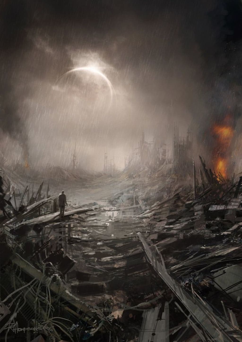 In the aftermath, I come out to see a ruined orphanage, along with a ruined city around me. It was hard to push out the debris that covered the trap door. When I finally crawled out, I only saw a quiet city, no buildings survived.