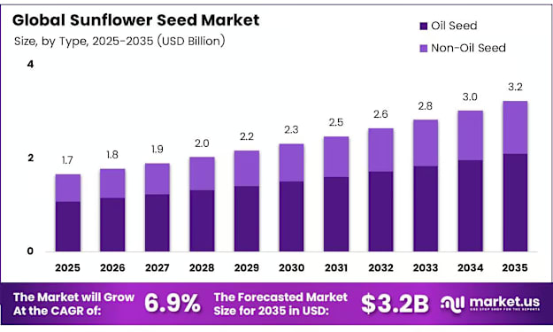 Market Overview The Global Sunflower Seed Market is projected to grow significantly, rising from USD 1.7 billion in 2025 to approximately USD 3.2 billion by 2035, registering a compound annual growth rate (CAGR) of 6.9% during the forecast period from 2026 to 2035.