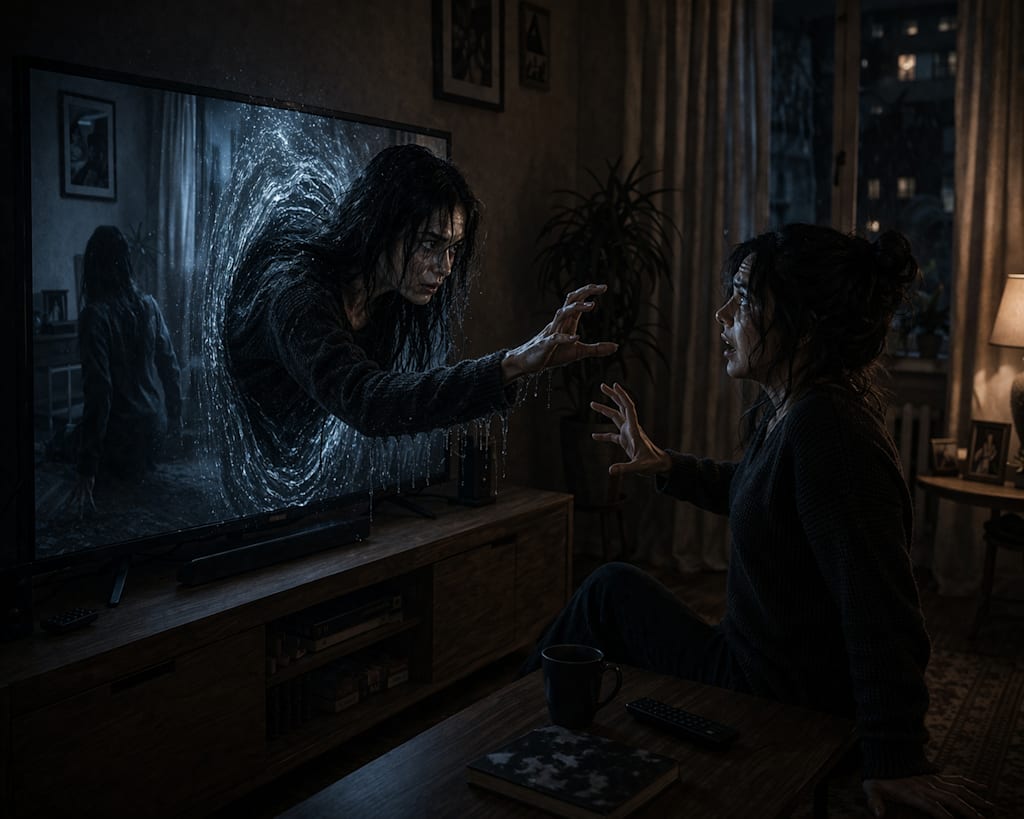 The other version of her stepped out of the TV.