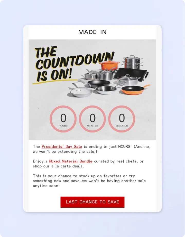 Sales-focused copy for an email campaign should be as relevant as possible — taking into account the customer’s interests and their stage in the decision-making process. It should clearly explain the benefit, create a sense of value and urgency, and prompt action.