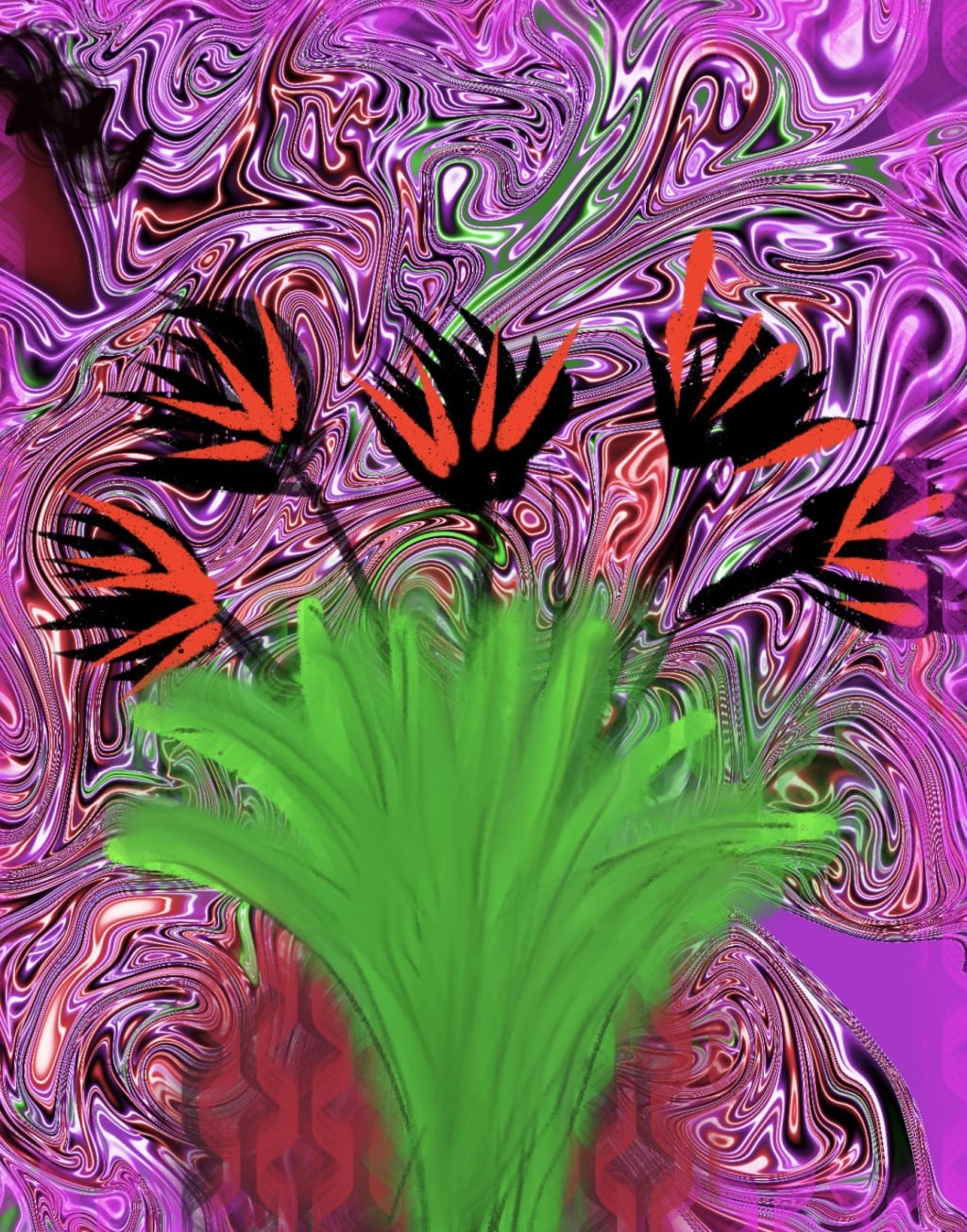 Red Flowers in a Broken Sky