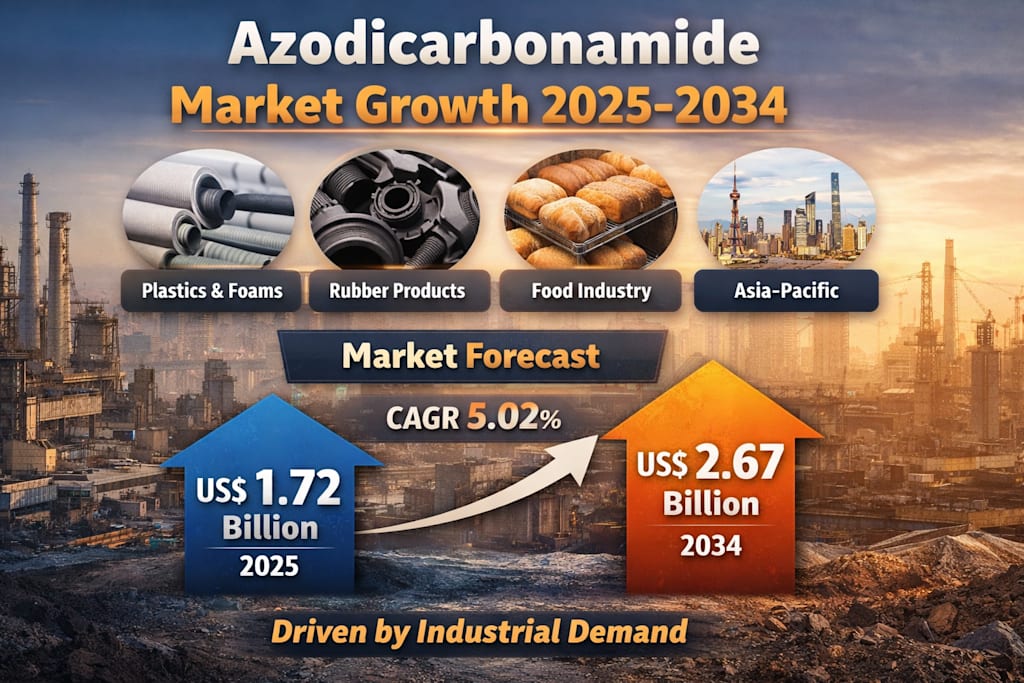 According to Renub Research, the Azodicarbonamide Market is expected to grow from US$ 1.72 billion in 2025 to US$ 2.67 billion by 2034, expanding at a CAGR of 5.02% from 2026 to 2034. That forecast reflects a market supported by rising demand in plastics, rubber, construction, and packaging, even as its use in food applications faces tighter scrutiny worldwide.
